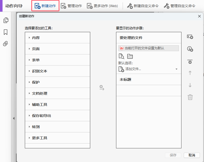 1.随便打开一个 pdf 文件,进去“动作向导”,点击之前保存的动作流程。