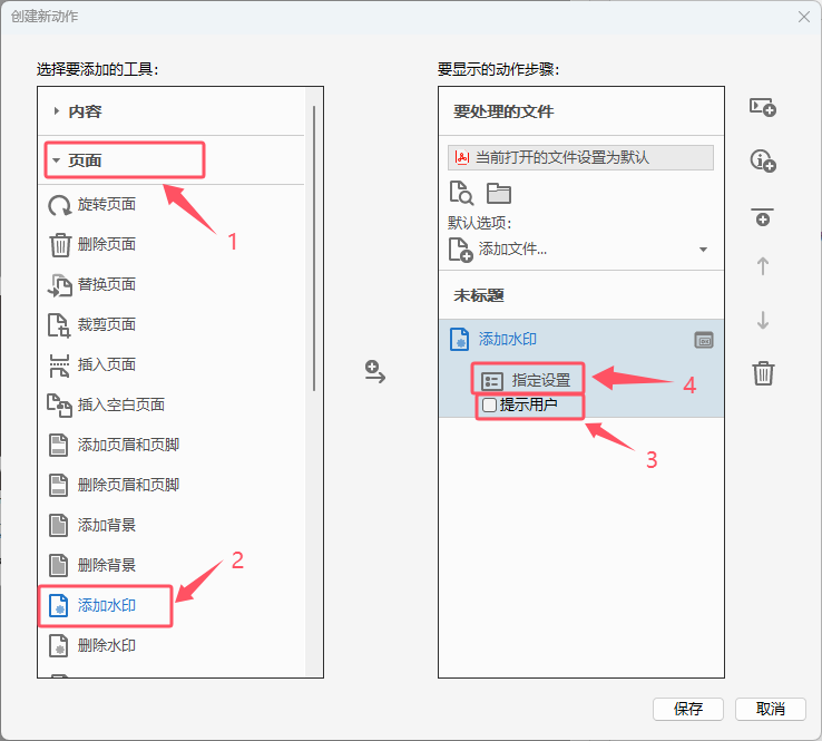 2.a 添加“内容”下的“添加水印”动作,不勾选“通知用户”。