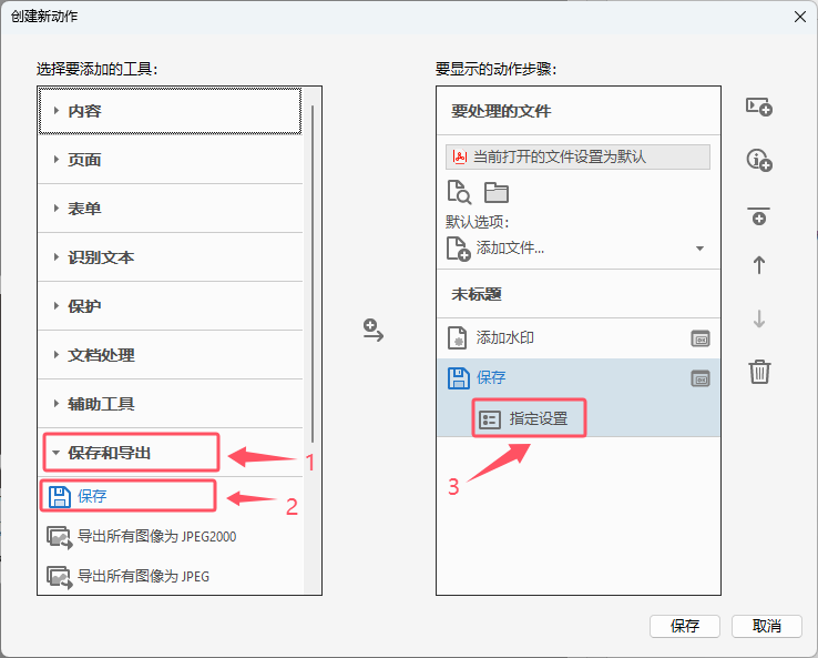 2.c 添加“保存”动作,并进入设置。