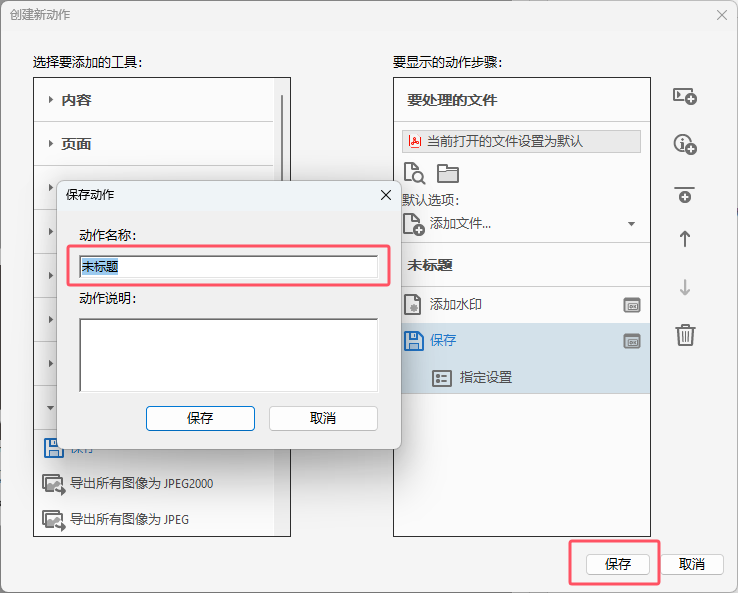 2.f 最终再保存一个名字,这个名字就是整个快捷操作的名字。